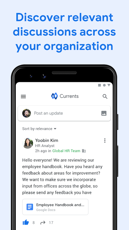 Assolutamente sì. Currents è un ottimo strumento per la comunicazione interna aziendale e la condivisione di informazioni rilevanti tra i colleghi.